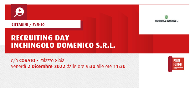 Porta Futuro area Metropolitana di Bari organizza il recruiting day per “Inchingolo Domenico srl”, azienda pugliese leader nella vendita di macchine agricole multimarca, ricambi e forniture di servizi di assistenza tecnica e meccanica, con cui ha avviato dei percorsi di ricerca e selezione per l’individuazione di risorse da inserire presso la propria sede di ANDRIA.